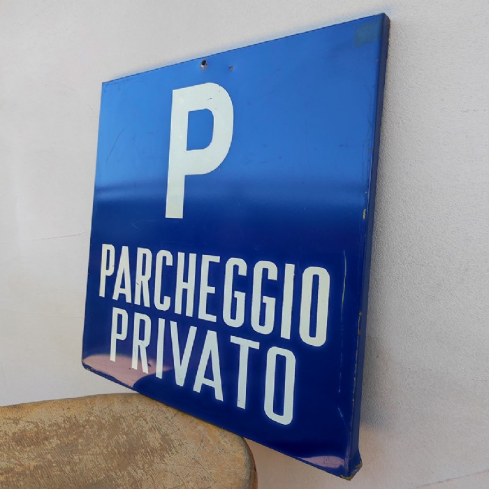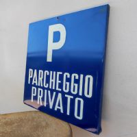 Oggetto n.106Insegna / cartello segnaletico di parcheggio privato originale vintage anni '80 circa in lamiera pesante.