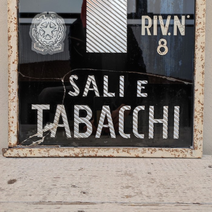 Insegna bifacciale "sali e tabacchi" originale vintage in vetro anni '60 circa.