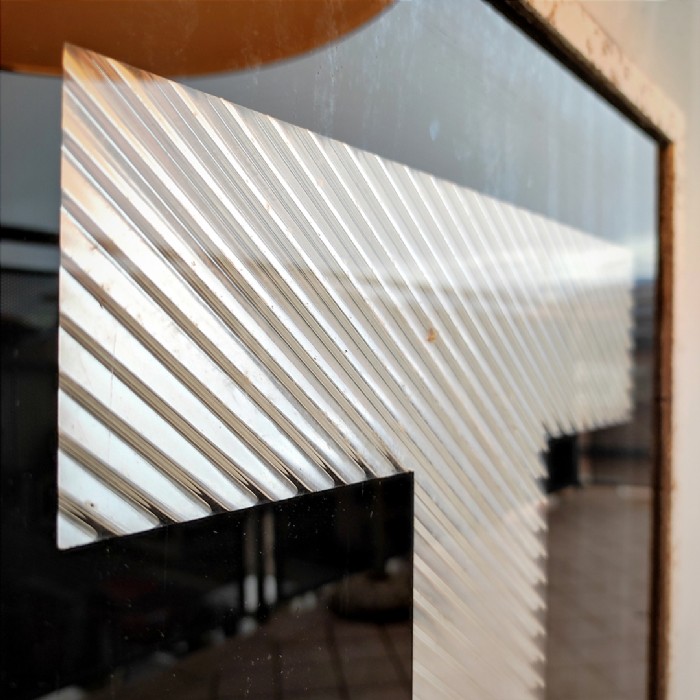 Un lato presenta il vetro scheggiato nel basso, ma, esteticamente non troppo evidente dato che la leggibilità dei testi è rimasta pressoché invariata.