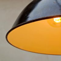 Oggetto n.224Lampada industriale di produzione "Mazda Francia" smaltata Vintage originale anni '50 a sospensione di forma circolare.