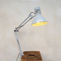 Lampada industriale da scrivania con morsetto marchiata "Brevetti Longoni Risma" Prodotto in Italia.