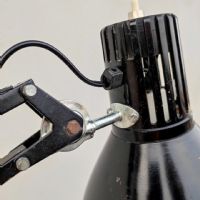 Lampada industriale da scrivania con morsetto marchiata "Brevetti Longoni Risma" Prodotto in Italia.