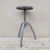 Sgabello industriale in ferro originale vintage da fabbrica / officina, regolabile in altezza tramite gli appositi fori posti sull'asta centrale.