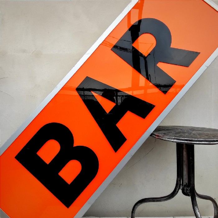 Grande e impattante insegna luminosa "BAR" vintage, anni '80.