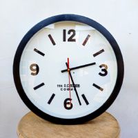 Forma circolare, materiale plastico, quadrante bianco, numeri e contorno neri.