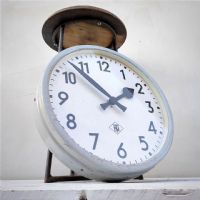 Oggetto n.7Grande orologio industriale da fabbrica in acciaio colore grigio pastello, marchiato TN TeleNorma, Germania anni '40.