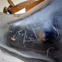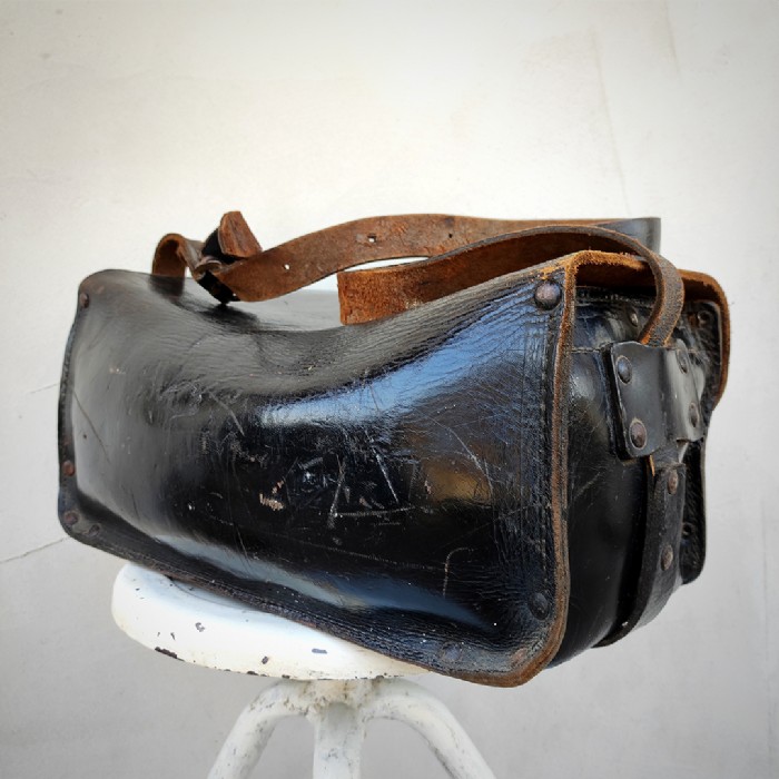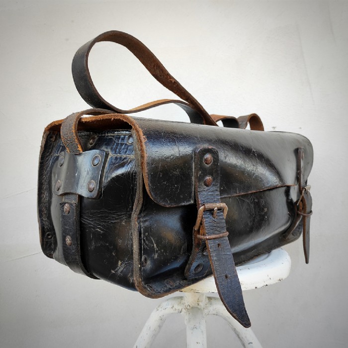 Borsa a tracolla da lavoro / idraulico in cuoio di colore marrone scuro vintage.