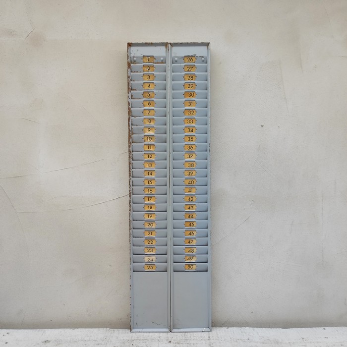 Doppio casellario porta cartellini timbratrice industriale vintage.