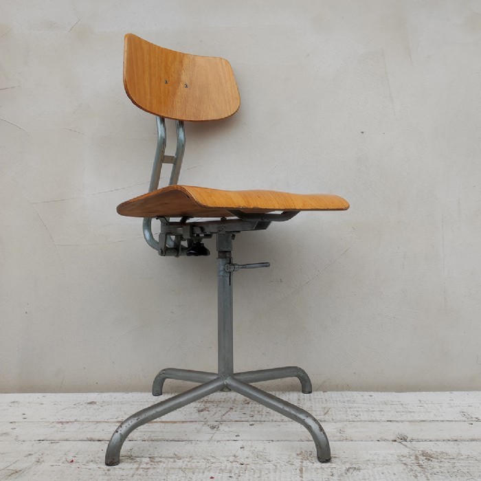 Oggetto n.429Sedia / sgabello indsutriale vintage con struttura in ferro e legno.
