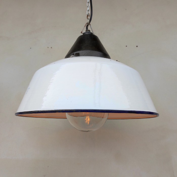 Ripulita con cura e rimessa in vita con un impianto elettrico nuovo: portalampadina in ceramica, gancetto e catenella. Ingresso per la lampadina E27 (per appartamento). Adatta a qualsiasi tipo di ambiente: appartamento, locale etc... Pronta all'uso.
