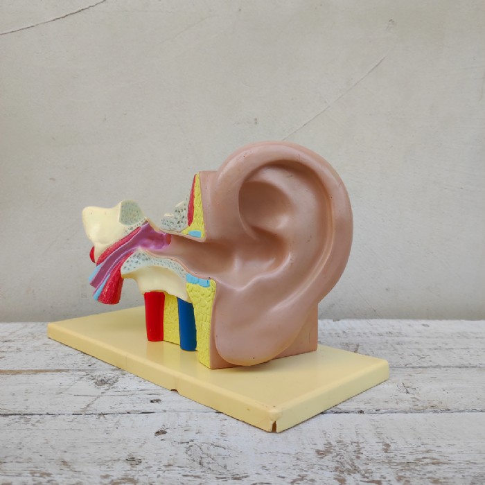 Oggetto n.434Modellino didattico dell'orecchio umano in materiale plastico, vintage anni '50 circa.