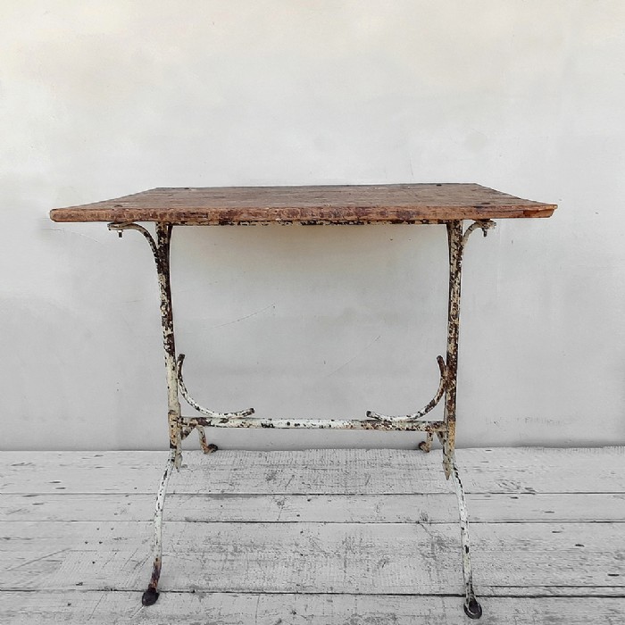 Oggetto n.452Stupendo tavolino da bistrot francese di primi '900 con struttura in ferro e tavola in legno.